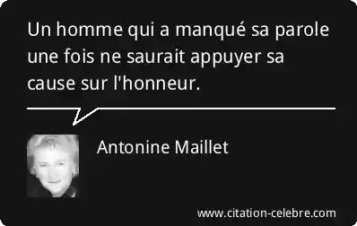 Un homme qui a manqué sa parole une fois ne saurait appuyer sa cause sur l'honneur.