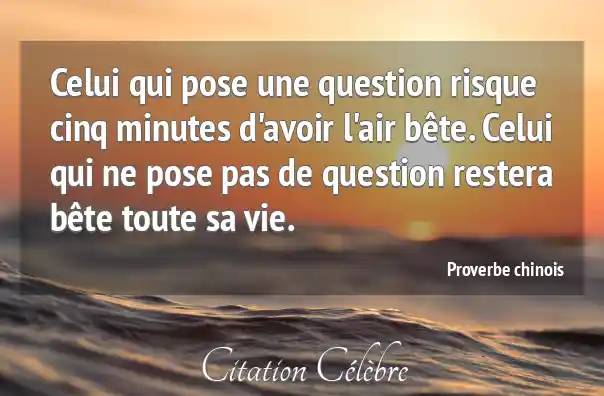 Celui qui pose une question risque cinq minutes d'avoir l'air bête. Celui qui ne pose pas de question restera bête toute sa vie.