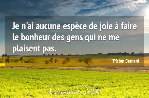 Je n'ai aucune espèce de joie à faire le bonheur des gens qui ne me plaisent pas.