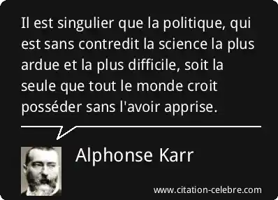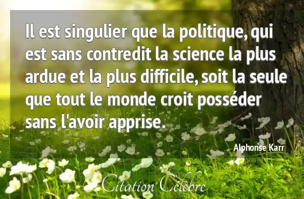 Il est singulier que la politique, qui est sans contredit la science la plus ardue et la plus difficile, soit la seule que tout le monde croit posséder sans l'avoir apprise.