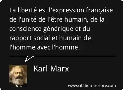 La liberté est l'expression française de l'unité de l'être humain, de la conscience générique et du rapport social et humain de l'homme avec l'homme.