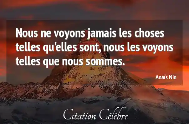 Nous ne voyons jamais les choses telles qu'elles sont, nous les voyons telles que nous sommes.