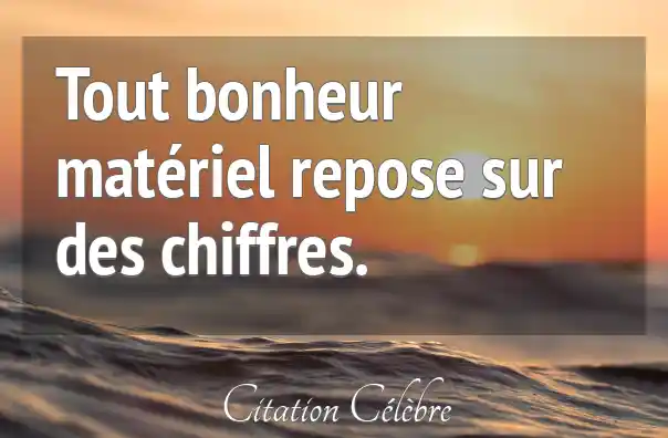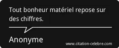 Tout bonheur matériel repose sur des chiffres.