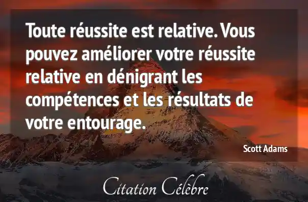 Toute réussite est relative. Vous pouvez améliorer votre réussite relative en dénigrant les compétences et les résultats de votre entourage.