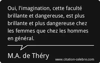 Oui, l'imagination, cette faculté brillante et dangereuse, est plus brillante et plus dangereuse chez les femmes que chez les hommes en général.