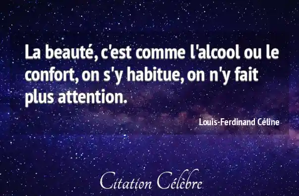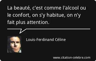 La beauté, c'est comme l'alcool ou le confort, on s'y habitue, on n'y fait plus attention.