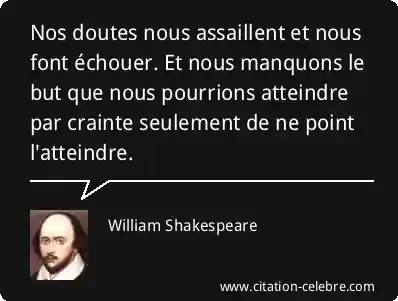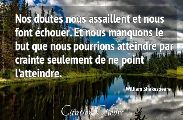Nos doutes nous assaillent et nous font échouer. Et nous manquons le but que nous pourrions atteindre par crainte seulement de ne point l'atteindre.
