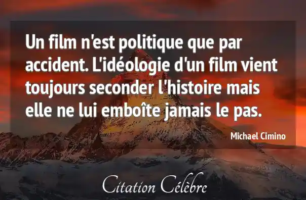 Un film n'est politique que par accident. L'idéologie d'un film vient toujours seconder l'histoire mais elle ne lui emboîte jamais le pas.
