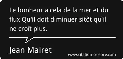 Le bonheur a cela de la mer et du flux Qu'il doit diminuer sitôt qu'il ne croît plus.