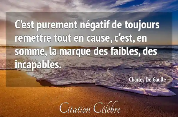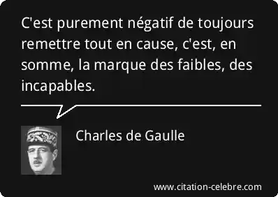 C'est purement négatif de toujours remettre tout en cause, c'est, en somme, la marque des faibles, des incapables.