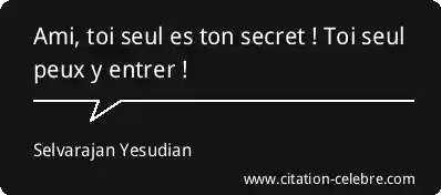 Ami, toi seul es ton secret ! Toi seul peux y entrer !