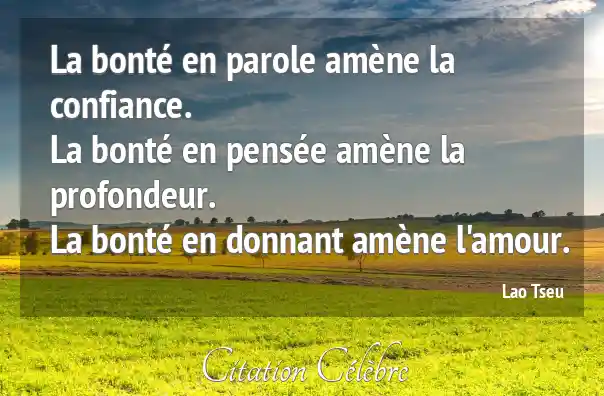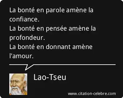 La bonté en parole amène la confiance.La bonté en pensée amène la profondeur.La bonté en donnant amène l'amour.