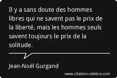Il y a sans doute des hommes libres qui ne savent pas le prix de la liberté, mais les hommes seuls savent toujours le prix de la solitude.