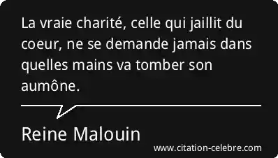 La vraie charité, celle qui jaillit du coeur, ne se demande jamais dans quelles mains va tomber son aumône.