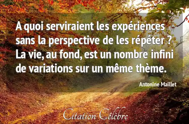 A quoi serviraient les expériences sans la perspective de les répéter ? La vie, au fond, est un nombre infini de variations sur un même thème.