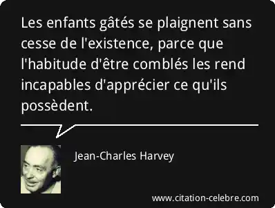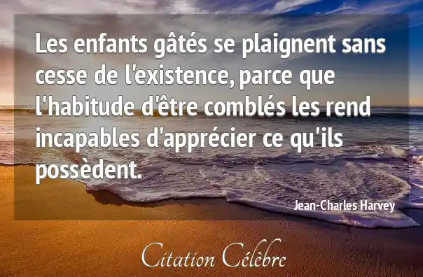 Les enfants gâtés se plaignent sans cesse de l'existence, parce que l'habitude d'être comblés les rend incapables d'apprécier ce qu'ils possèdent.