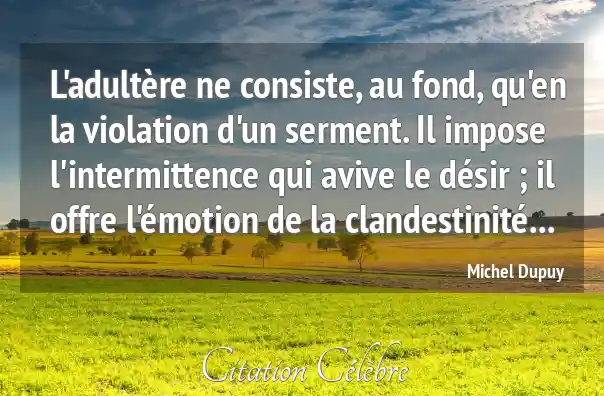 L'adultère ne consiste, au fond, qu'en la violation d'un serment. Il impose l'intermittence qui avive le désir ; il offre l'émotion de la clandestinité...