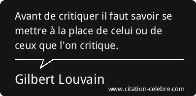 Avant de critiquer il faut savoir se mettre à la place de celui ou de ceux que l'on critique.