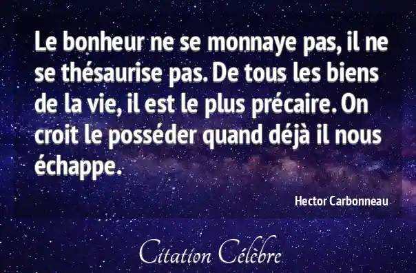 Le bonheur ne se monnaye pas, il ne se thésaurise pas. De tous les biens de la vie, il est le plus précaire. On croit le posséder quand déjà il nous échappe.