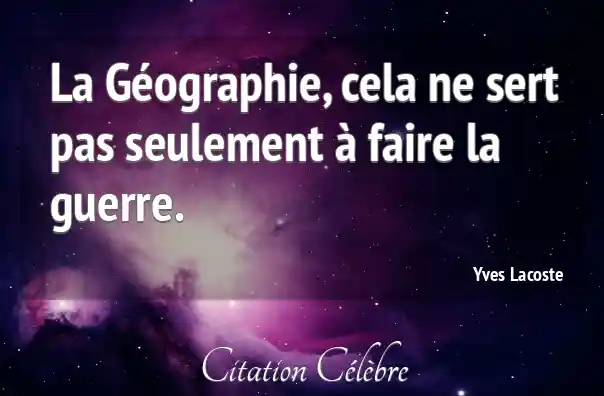 La Géographie, cela ne sert pas seulement à faire la guerre.