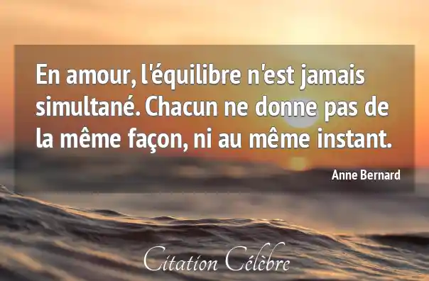 En amour, l'équilibre n'est jamais simultané. Chacun ne donne pas de la même façon, ni au même instant.