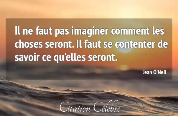 Il ne faut pas imaginer comment les choses seront. Il faut se contenter de savoir ce qu'elles seront.