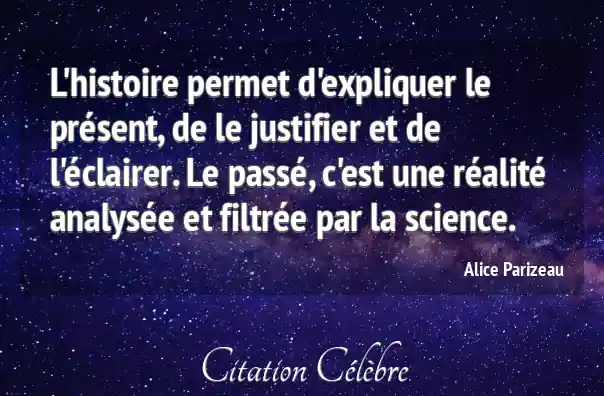 L'histoire permet d'expliquer le présent, de le justifier et de l'éclairer. Le passé, c'est une réalité analysée et filtrée par la science.