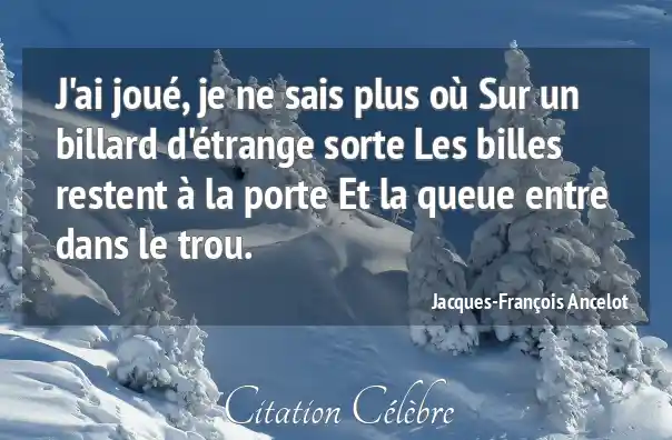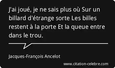 J'ai joué, je ne sais plus où Sur un billard d'étrange sorte Les billes restent à la porte Et la queue entre dans le trou.