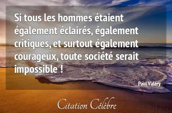 Si tous les hommes étaient également éclairés, également critiques, et surtout également courageux, toute société serait impossible !
