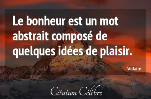 Le bonheur est un mot abstrait composé de quelques idées de plaisir.