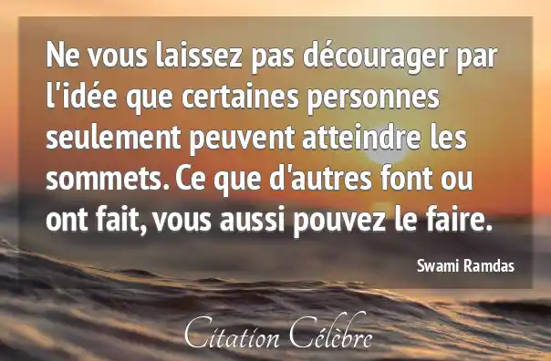 Ne vous laissez pas décourager par l'idée que certaines personnes seulement peuvent atteindre les sommets. Ce que d'autres font ou ont fait, vous aussi pouvez le faire.