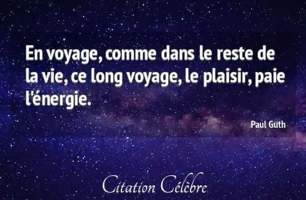 En voyage, comme dans le reste de la vie, ce long voyage, le plaisir, paie l'énergie.
