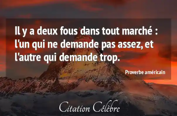 Il y a deux fous dans tout marché : l'un qui ne demande pas assez, et l'autre qui demande trop.