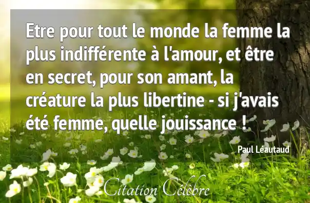 Etre pour tout le monde la femme la plus indifférente à l'amour, et être en secret, pour son amant, la créature la plus libertine - si j'avais été femme, quelle jouissance !