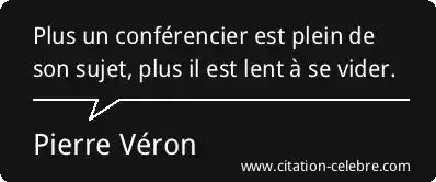 Plus un conférencier est plein de son sujet, plus il est lent à se vider.