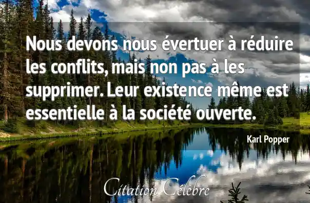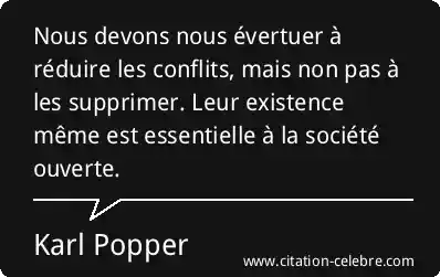 Nous devons nous évertuer à réduire les conflits, mais non pas à les supprimer. Leur existence même est essentielle à la société ouverte.