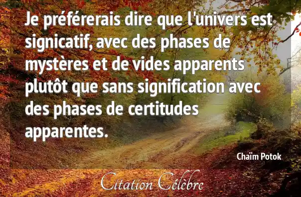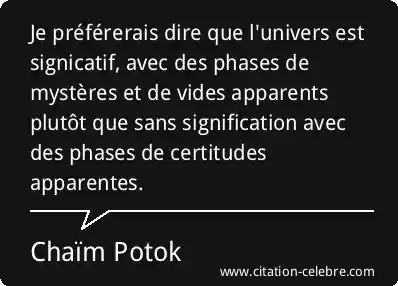 Je préférerais dire que l'univers est signicatif, avec des phases de mystères et de vides apparents plutôt que sans signification avec des phases de certitudes apparentes.