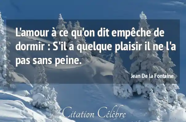L'amour à ce qu'on dit empêche de dormir : S'il a quelque plaisir il ne l'a pas sans peine.