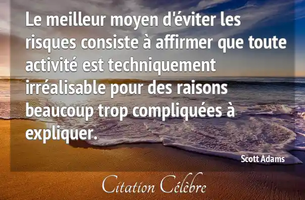 Le meilleur moyen d'éviter les risques consiste à affirmer que toute activité est techniquement irréalisable pour des raisons beaucoup trop compliquées à expliquer.