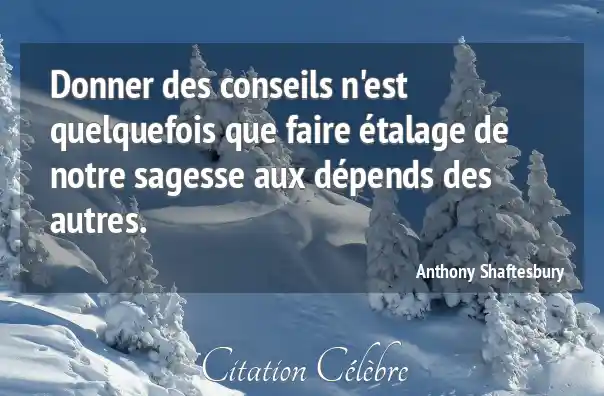 Donner des conseils n'est quelquefois que faire étalage de notre sagesse aux dépends des autres.