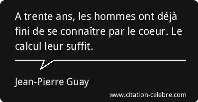 A trente ans, les hommes ont déjà fini de se connaître par le coeur. Le calcul leur suffit.