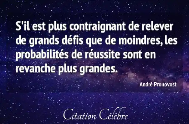 S'il est plus contraignant de relever de grands défis que de moindres, les probabilités de réussite sont en revanche plus grandes.