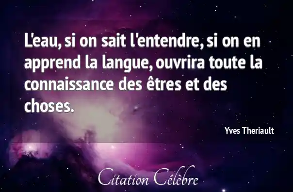 L'eau, si on sait l'entendre, si on en apprend la langue, ouvrira toute la connaissance des êtres et des choses.