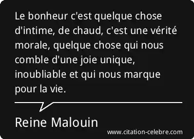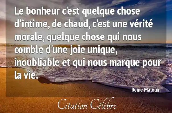Le bonheur c'est quelque chose d'intime, de chaud, c'est une vérité morale, quelque chose qui nous comble d'une joie unique, inoubliable et qui nous marque pour la vie.