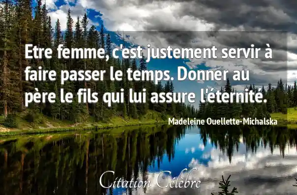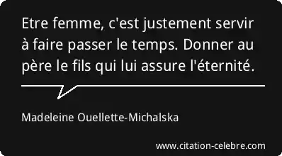 Etre femme, c'est justement servir à faire passer le temps. Donner au père le fils qui lui assure l'éternité.