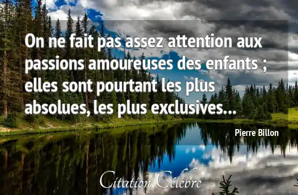 On ne fait pas assez attention aux passions amoureuses des enfants ; elles sont pourtant les plus absolues, les plus exclusives...