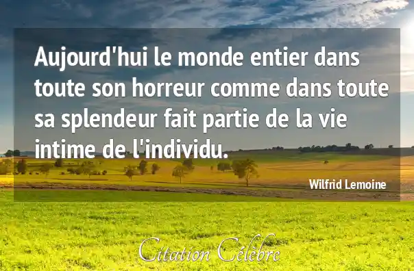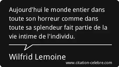 Aujourd'hui le monde entier dans toute son horreur comme dans toute sa splendeur fait partie de la vie intime de l'individu.