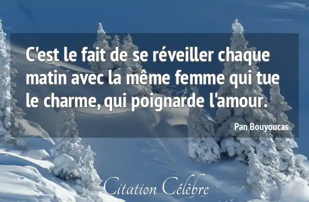 C'est le fait de se réveiller chaque matin avec la même femme qui tue le charme, qui poignarde l'amour.