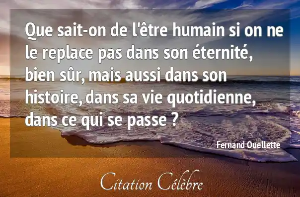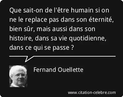 Que sait-on de l'être humain si on ne le replace pas dans son éternité, bien sûr, mais aussi dans son histoire, dans sa vie quotidienne, dans ce qui se passe ?