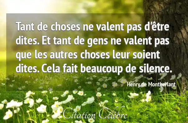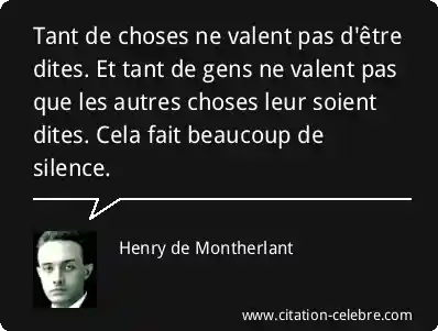 Tant de choses ne valent pas d'être dites. Et tant de gens ne valent pas que les autres choses leur soient dites. Cela fait beaucoup de silence.